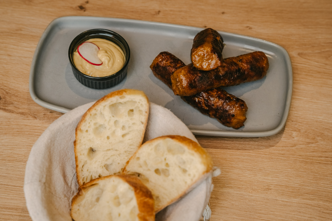 - Ingrediente: Carne bizon, carne porc, mix condimente, mustar, paine